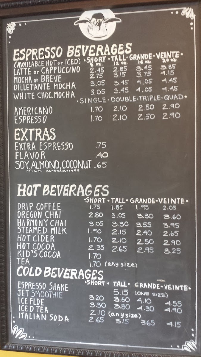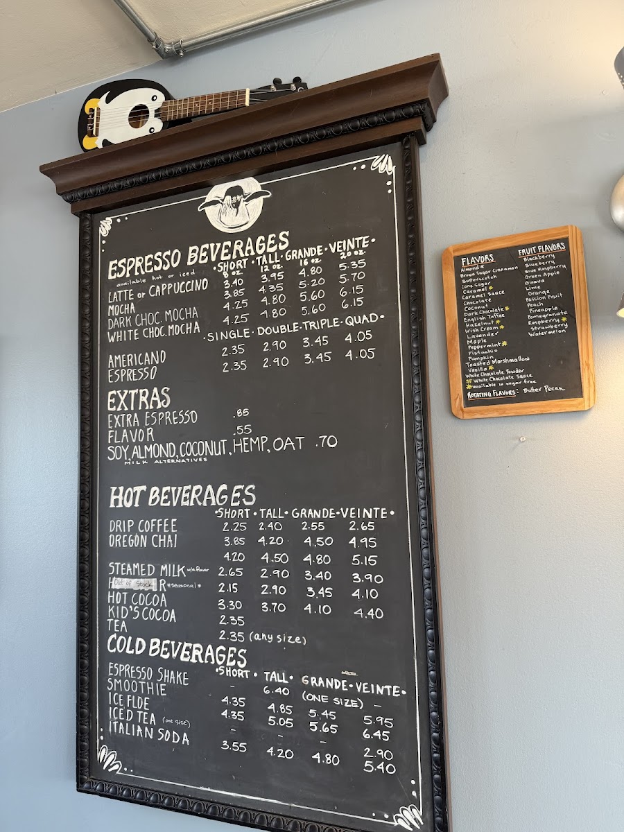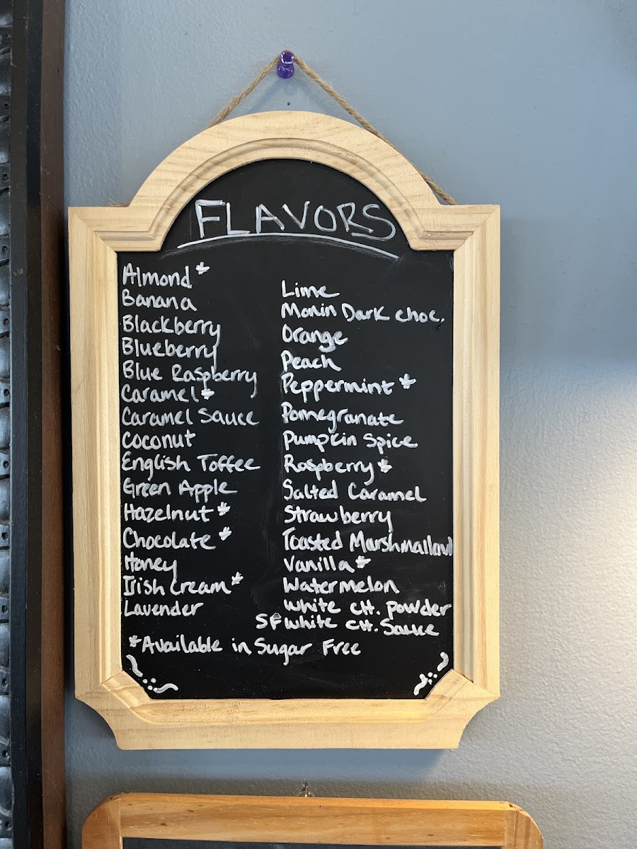 Espresso mixed with white chocolate and steamed milk. Comes hot or iced!